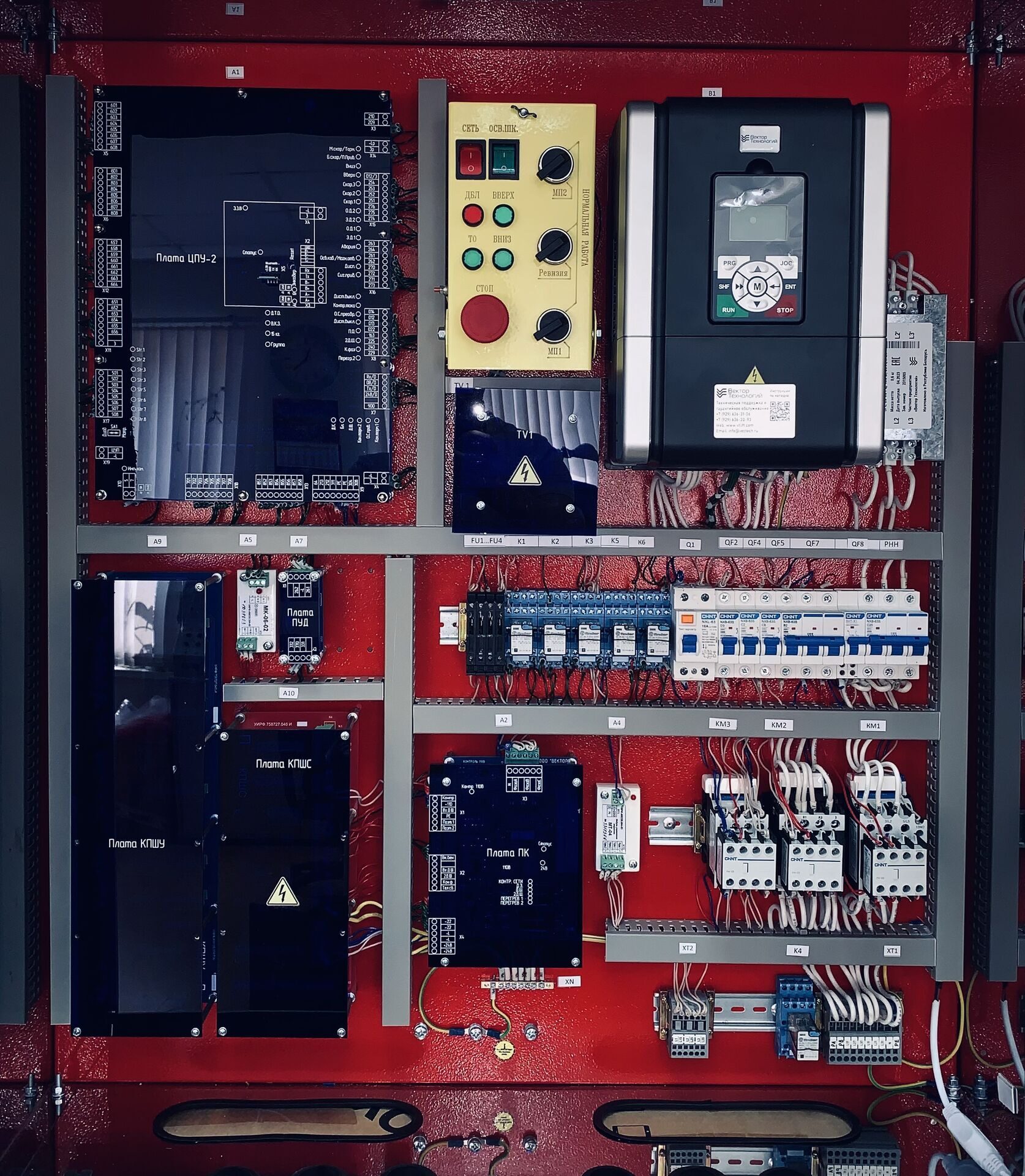 • Отдельный силовой шкаф с преобразователем частоты и пускателями в шахте лифта или все электрооборудование встроено в шкаф, кроме преобразователя частоты;